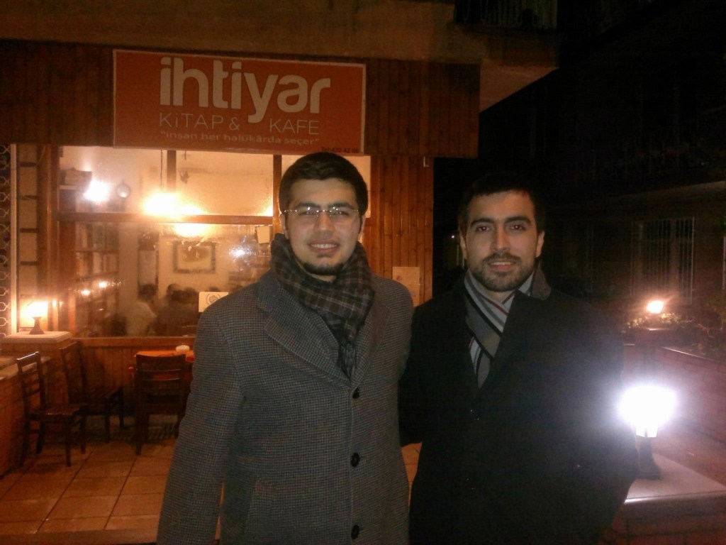 2007’de iki Çukurova çocuğu olarak Hacettepe’de tanıştığımız ve aynı odayı paylaştığımız kadim arkadaşım Ferhat Genç ile Ankara’daki İhtiyar Kitabevinde içtiğimiz çay sonrası bir hatıra fotoğrafı. Bu fotoğrafın çekildiği an öncesinde mekanın sahibi İbrahim bey de masamıza gelmiş ve sohbet etmişti bizimle. Ferhat arkadaşım alanında yetkin bir istatistikçi ve de otomotiv sektöründe üst düzey bir yöneticidir. Üniversite yılları deyince aynı odayı ve havayı teneffüs ederek biriktirdiğimiz hatıralar önemli bir yekünü teşkil eder.